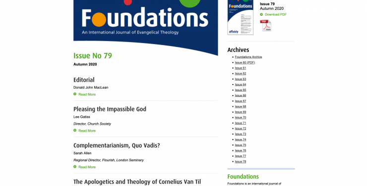 We are delighted to publish today the latest issue of our theological journal Foundations. All articles are free to view online or download. Issues 79 includes a piece on how to please God by Lee Gatiss, an overview of how complementarianism is being worked out in UK churches today by Sarah Allen, an article on the apologetics and theology of Cornelius Van Til by David Filson, the life and work of Abraham Kuyper by Steve Bishop, and finally how Samuel Rutherford understood sanctification in the context of controversies of his day by Song-En Poon.